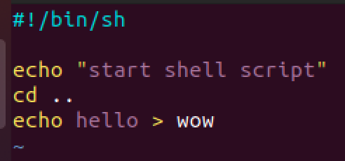 현재 경로의 상위 폴더로 이동후에 hello 문자열을 입력한 wow파일을 생성해주는 shell script입니다.